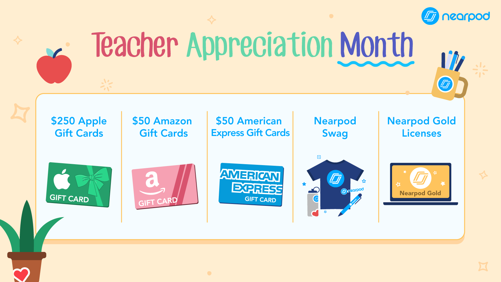 Nearpod On Twitter Teacherappreciation Week May Be Over But We Re Celebrating Teachers Alllll Month Long Enter For Your Chance To Win Apple Gift Cards Nearpod Swag Amazon Gift